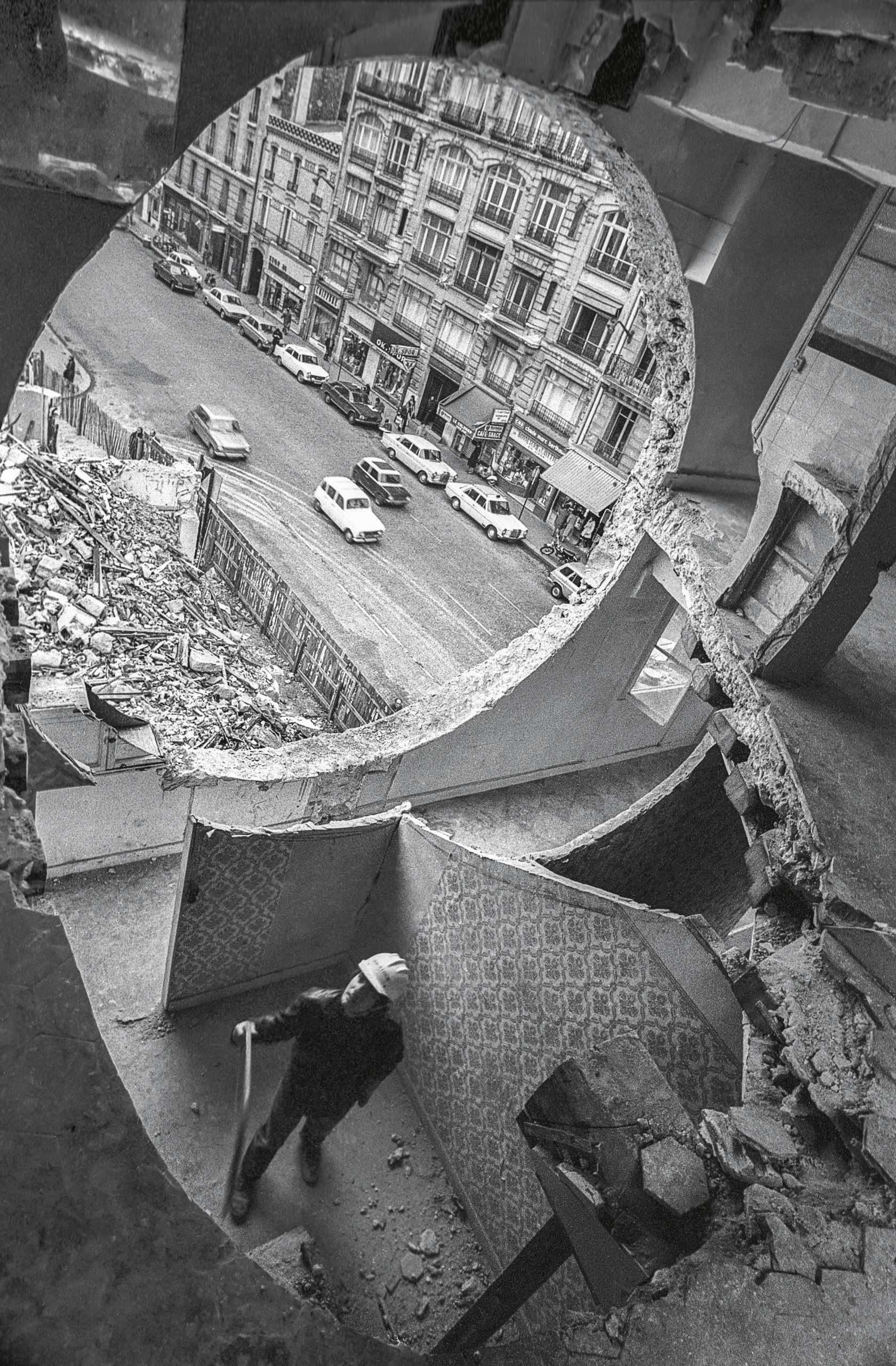 Gordon Matta-Clark’s “Conical Intersect,” the artist’s contribution to the 1975 Paris Biennial, involved cutting into two 17th-century buildings not far from the Louvre. Photo by Marc Petitjean
