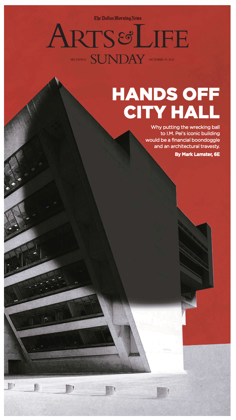 (Lamster is no Johnny-Come-Lately to the City Hall cause. In 2022, he wrote a tribute to Pei’s design with the following headline: “Why Dallas’ most hated building just might be its greatest masterpiece.”)