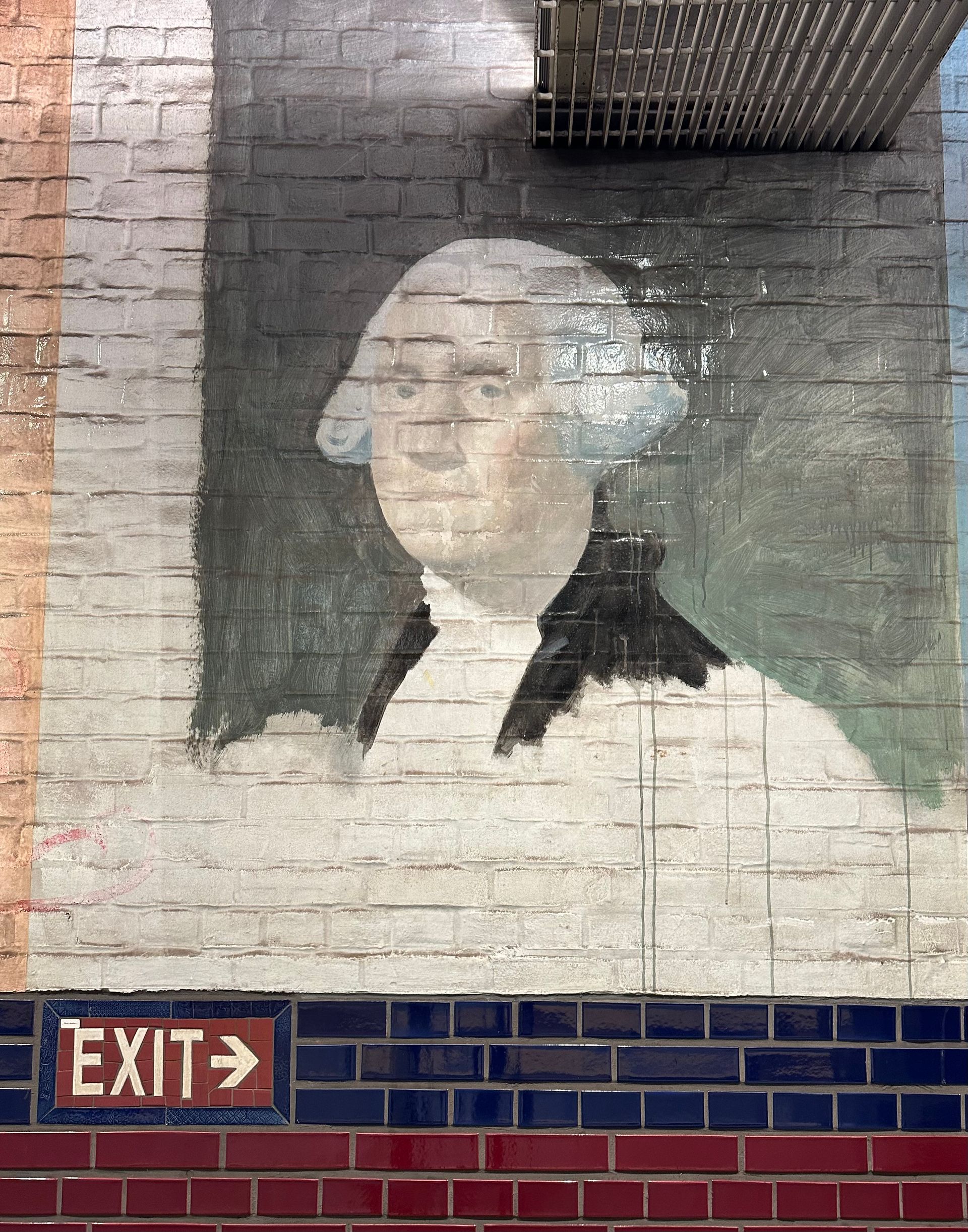 An image of George Washington in Philadelphia’s 5th Street SEPTA station, part of a larger installation by artist Tom Judd